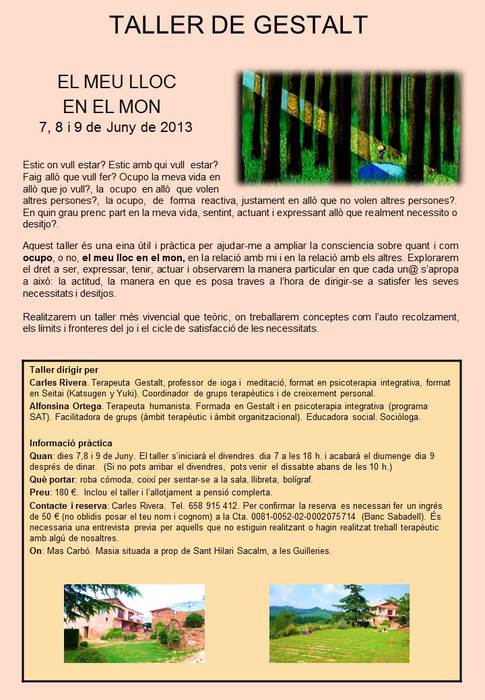 Sant Cugat: 9 Diciembre de 9,30 h. a 19,30 h. Precio: 60 €.